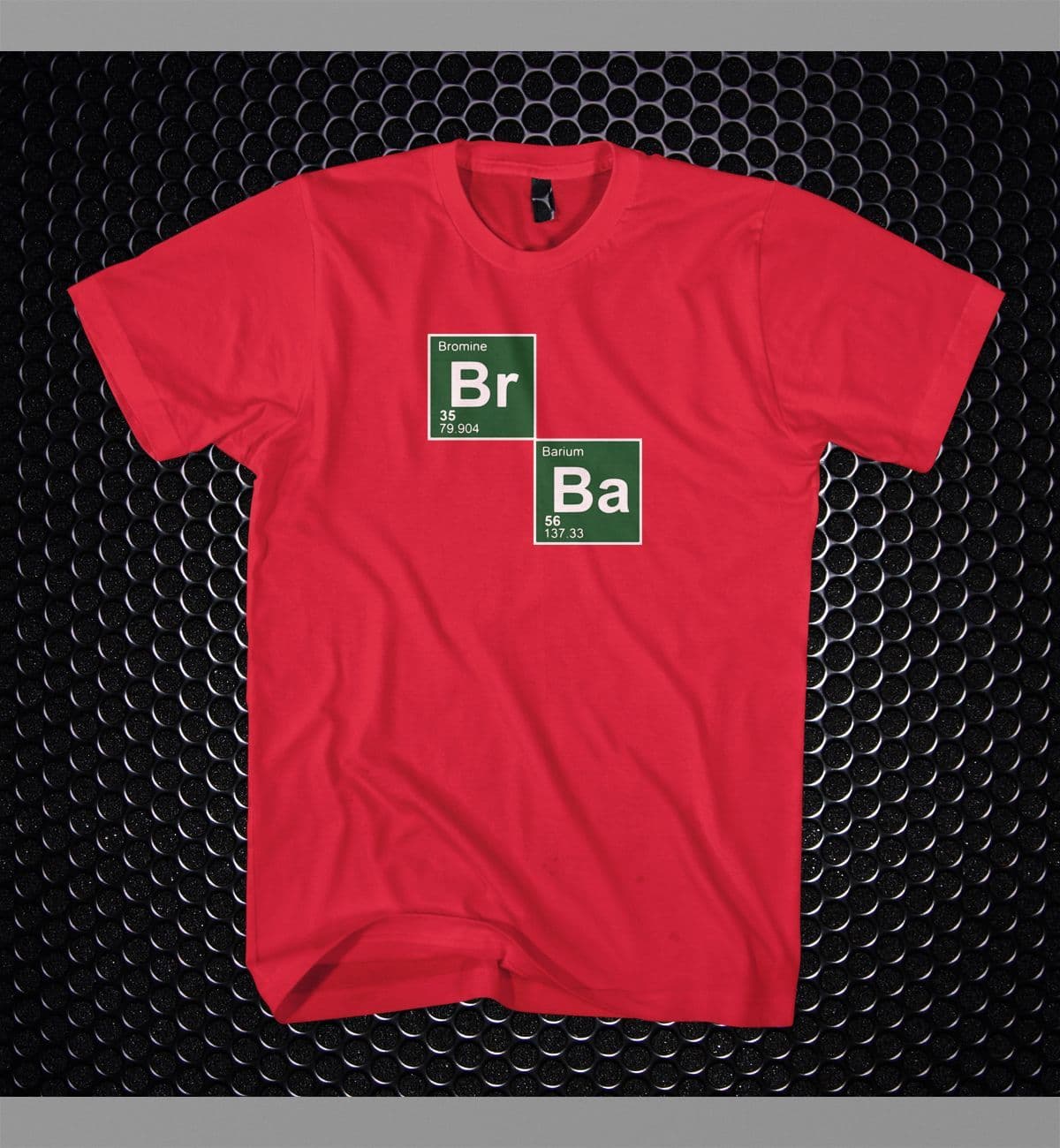 Home / BREAKING BAD Product Description Breaking Bad 'Bromine Barium' t-shirt Specifications Weight 0.25kg Description Breaking Bad 'Bromine Barium' t-shirt Attributes Weight 0.25kg Delivery & Returns Returns accepted.Please refer to our Delivery tab for full information. Breaking Bad 'Bromine Barium' t-shirt Exact Colour Black Gray Red White Navy Blue Size L M S XL XXL £12.99 Login to add this product to your wishlist. You may also like Breaking Bad Apply Yourself t-shirt Breaking Bad Ass T-shirt